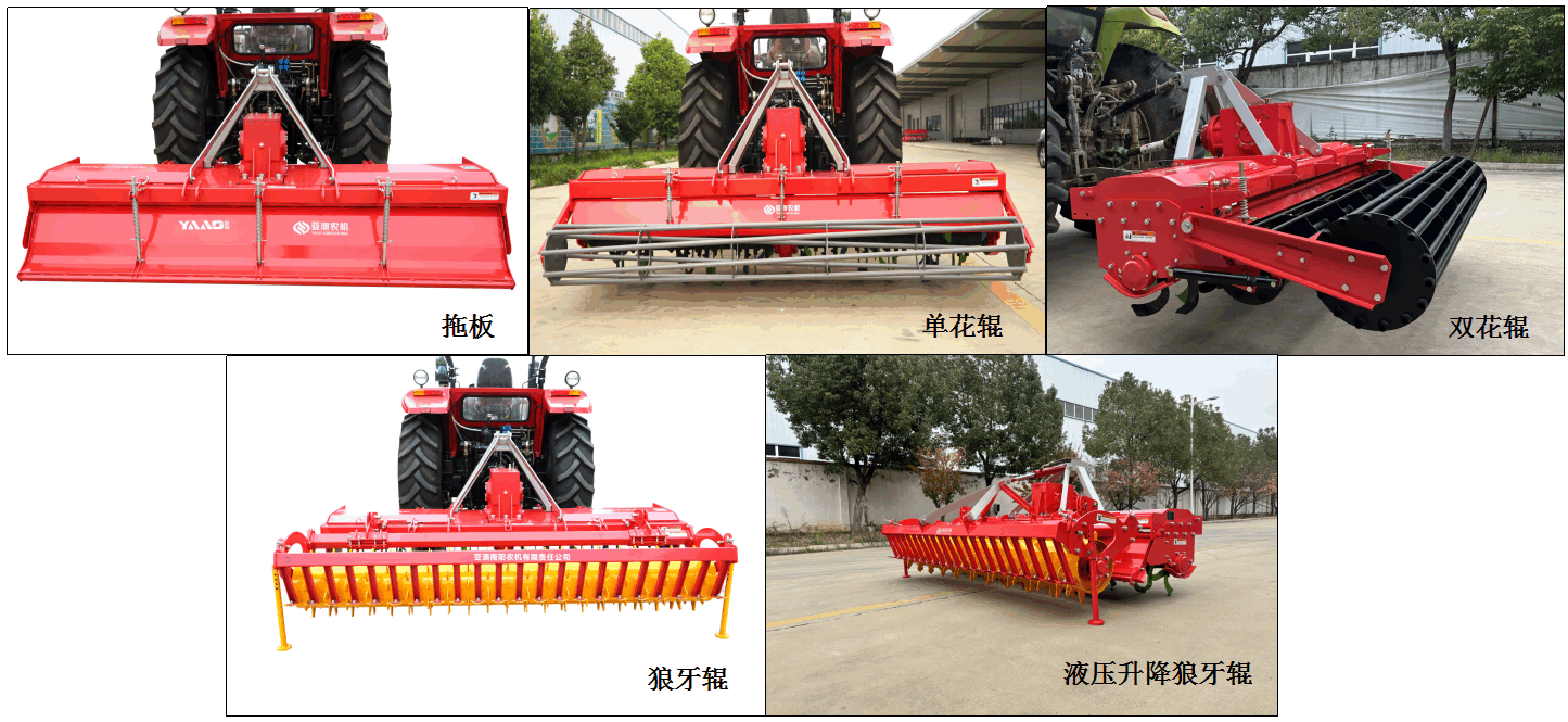 由拖拉機驅(qū)動的耕整地作業(yè)機具,利用刀軸上旋耕刀的旋轉(zhuǎn)運動和機具前進的復合運動對土地進行旋耕碎土作業(yè),能一次完成耕、耙、平的作業(yè)。具有旱田碎土充分,地面平整,水田泥爛成漿,適應(yīng)性廣、作業(yè)效率高等優(yōu)點。