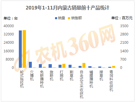 不論是從銷量還是銷售額方面,均可以看出輪式拖拉機在內(nèi)蒙古地區(qū)農(nóng)機產(chǎn)品中占有重要的地位。